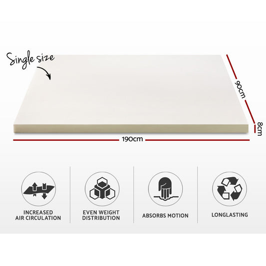 Marlook Bedding Memory Foam Mattress Topper 7-Zone 8cm Single