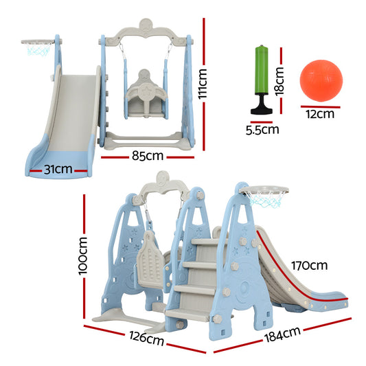 Marlook Kids Slide Swing Set Basketball Hoop Outdoor Playground Toys 120cm Blue