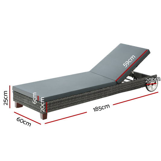 Marlook Sun Lounge Wicker Lounger Outdoor Furniture Day Bed Wheels Patio Grey