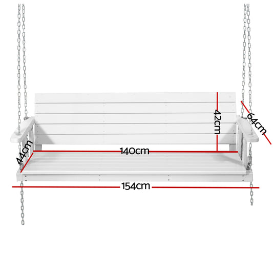 Marlook Porch Swing Chair with Chain Outdoor Furniture 3 Seater Bench Wooden White