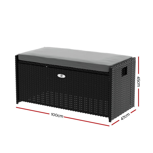 Marlook Outdoor Storage Bench Box Wicker Garden Sheds Tools Cushion Patio Furniture Black