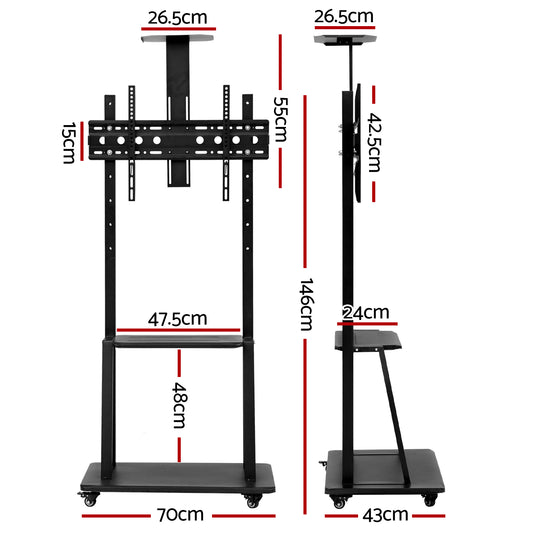 Marlook Mobile TV Stand for 23"-65" TVs Mount Bracket Portable Solid Trolley Cart