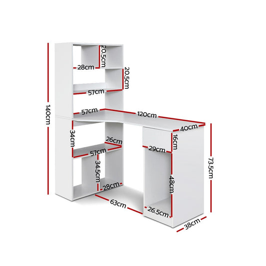 Marlook Computer Desk Bookshelf Drawer Cabinet White 120CM