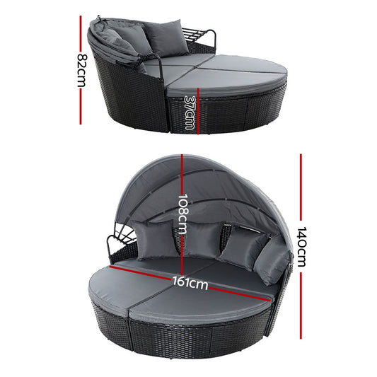 Marlook Sun Lounge Setting Wicker Lounger Day Bed Patio Outdoor Furniture Black