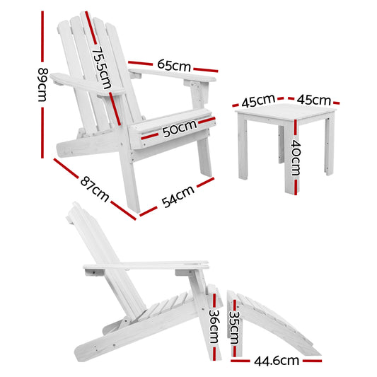Marlook 3PC Adirondack Outdoor Table and Chairs Wooden Sun Lounge Beach Patio White