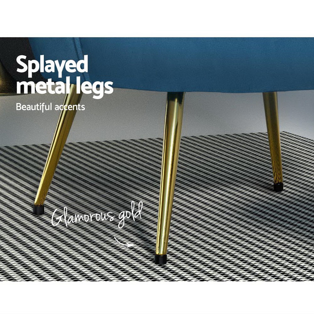 Iconic design. Timeless appeal. Our Marlook Armchair is the epitome of trendsetting style designed for the bold and passionate. With its thick padding of high resilience foam and velvet fabric upholstery, the armchair is perfect as a reading chair or a favourite relaxation seat. The vintage-style scallop shell back wraps around and hugs your body to provide perfect support and comfort. The splayed metal legs in glamorous gold give the armchair loads of character as well as providing a very stable base. Not least, the workmanship is meticulous with the fluid corners and sturdy wooden frame. The armchair will blend well with any setting from classic to contemporary and will also soften the flow of rooms with angular furniture and accents.
