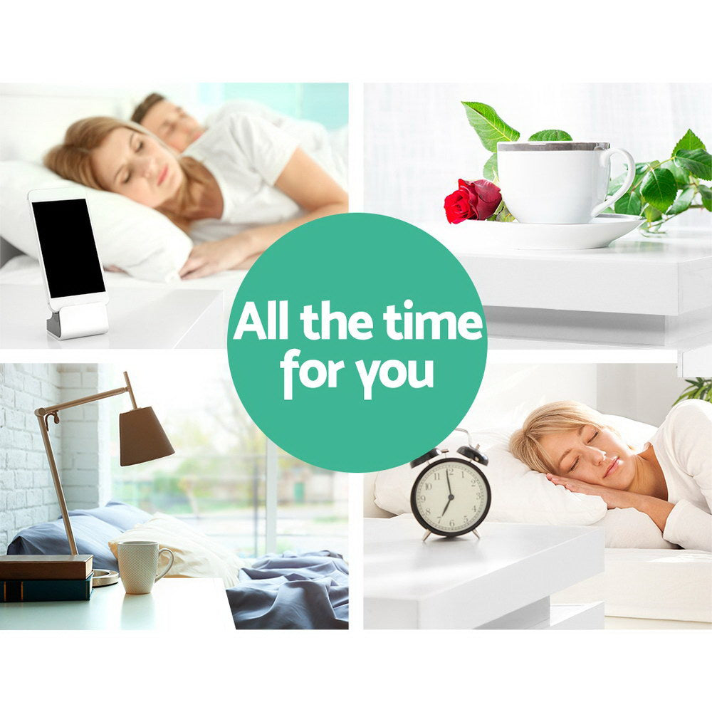 Tired of fumbling in the dark for a light switch in the middle of the night? With our Marlook LED Bedside Table, your problems are solved. The bedside table comes with built-in LED lighting that can be customised into 16 different colours to suit your preference. Not only will it create a beautiful ambience, it will also save you from buying extra bedside lamps or nightlights. Three deep drawers sliding on smooth anti-rust runners provide ample storage space. There is also a top storage compartment that opens with a lift-up lid like a treasure trunk, which you can fittingly fill with your own personal treasures. Better still, the handle-free design gives it a modern vibe that stands out from the mundane. Quality-made with 15mm thick melamine particle board and UV high gloss finish, the bedside table is durable and easy to maintain. And it will be the perfect addition to your modern bedroom with its contemporary and linear design. Or you can keep one in the living room to wow all your houseguests.