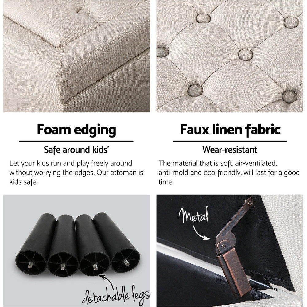 Marlook Storage Ottoman Blanket Box 96cm Linen Taupe
