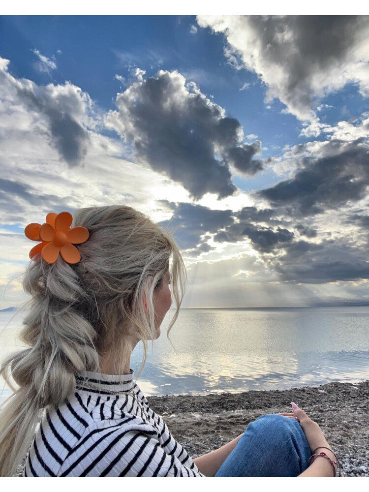 This flower clip is the prettiest way to clip your hair up and finish your outfit perfectly!