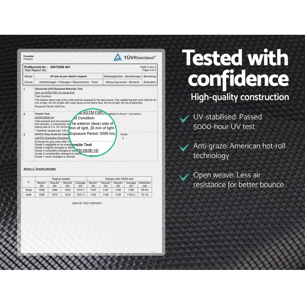 Bounce to your heart's content with the Trampoline. With its superior bounce characteristics featuring 64-piece triple rate springs, the 10-foot Trampoline enables safe and durable bouncing with no worries. The heavy-gauge steel framework is designed to handle all robust play and is UV-tested for quality and reliability. Other great features include a curve design for more rigidness, 20mm thick padding, anti-graze mat, safety netting and a double-lock zip-and-clip entry. Not least, the included basketball hoop, basketball and pump really adds an awesome fun factor to the entire ensemble. So jump to it and order the Trampoline today.