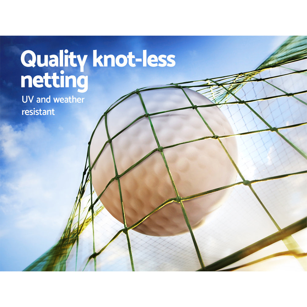 Practice your tennis swing in peace with an Marlook 3m Golf Practice Cage. The spacious cage is built for multipurpose use with sturdy knot-less netting on a strong steel frame construction with heavy duty tubes. Use it to practice golf, tennis, football, baseball or any sports that require precise aim. The cage is weather resistant and can be left outside all year round, or you can move it indoors for practice in the gym or playroom. Includes a free cloth with a target so you can practice your precise aim. It is easy to set up with our step-by-step guide, so you can put it together anywhere for a fun and sporty afternoon. Get your game on and enjoy fitness your way with an Marlook 3m Golf Practice Cage.