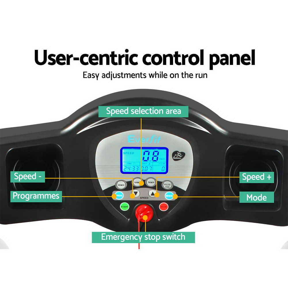 Operating the Treadmill is totally effortless (we rather you save that for the running and walking) with up to 12 pre-set training programmes to choose via the user-centric and brightly lid LCD display. And you can easily increase the speed levels (up to 12 settings) to match your workout intensity on the sturdy and strong assembly without losing a beat. Not least, the anti-slip belt and soft-grip handle bar with pulse sensors will make your session a comfortable and controlled experience through and through.