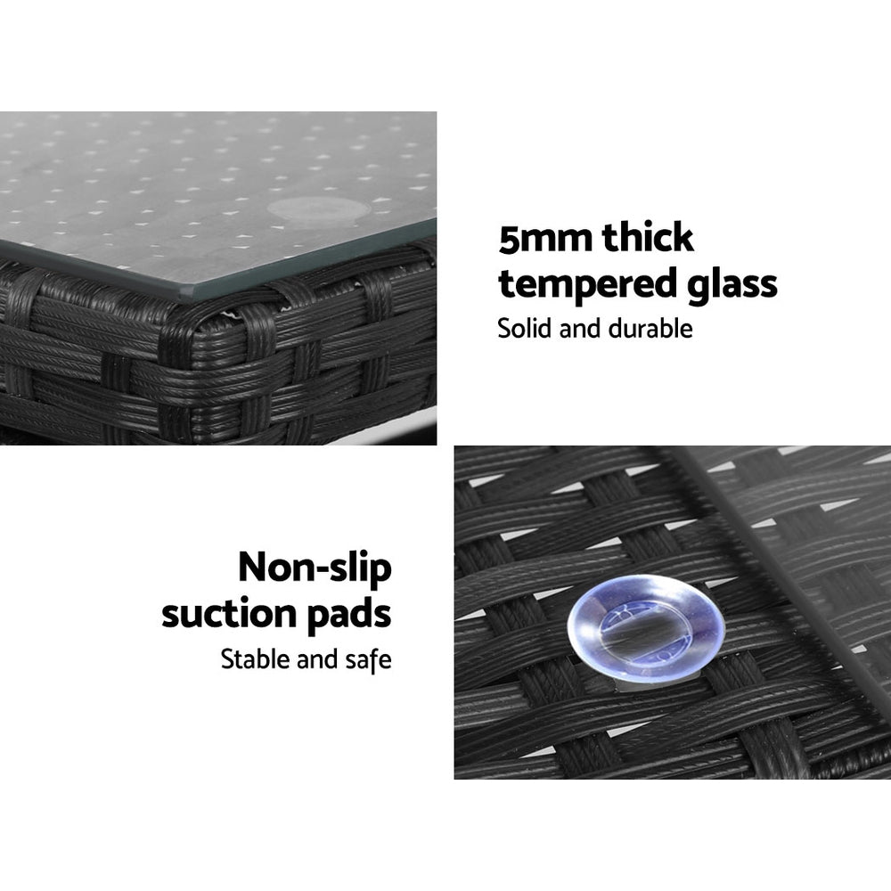 Meticulously crafted, our Marlook 4-piece Rattan Outdoor Set comprises two armchairs, a two-seater and a matching table for a beautiful integrated look. Its presence will definitely add panache and style to your deck, patio or even living room. Made of eco-friendly PE wicker and a sturdy steel frame, this set is designed to last through all weather and the test of time. The 5mm thick tempered glass top with non-slip suction pads for the table also ensures strong and safe use with total peace of mind. Not least, the cushion covers are removable and washable to maintain their pristine appearance. There is even a bonus storage cover included for you to protect the set from sun and rain when not in use, so that you can keep enjoying your garden parties for many years to come.