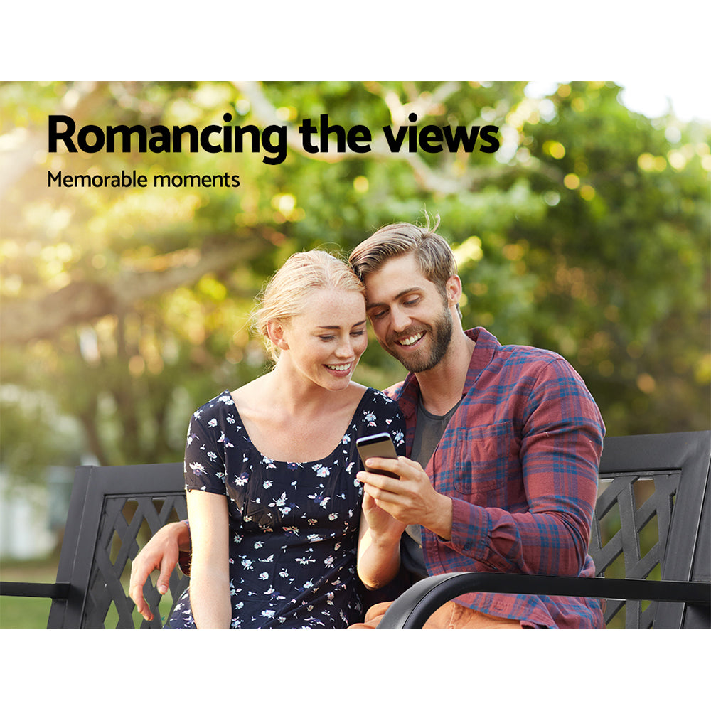 Marlook Outdoor Garden Bench Seat Steel Outdoor Furniture 2 Seater Park Black