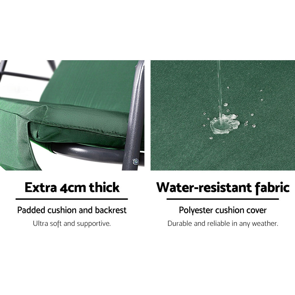 Marlook Outdoor Swing Chair Garden Bench Furniture Canopy 3 Seater Green