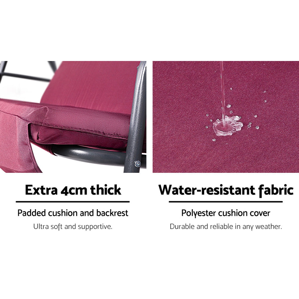 Marlook Outdoor Swing Chair Garden Bench Furniture Canopy 3 Seater Wine Red