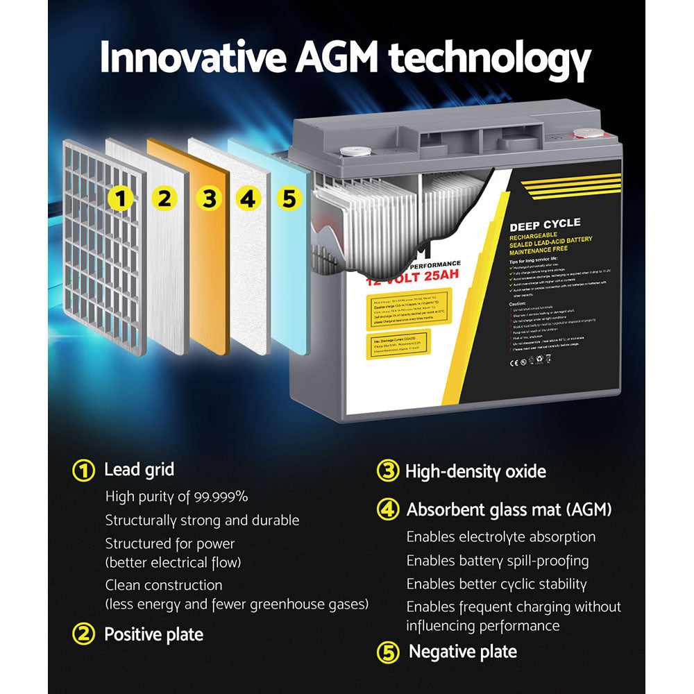 Marlook AGM Deep Cycle Battery 12V 25Ah Box Portable Solar Marlook Camping