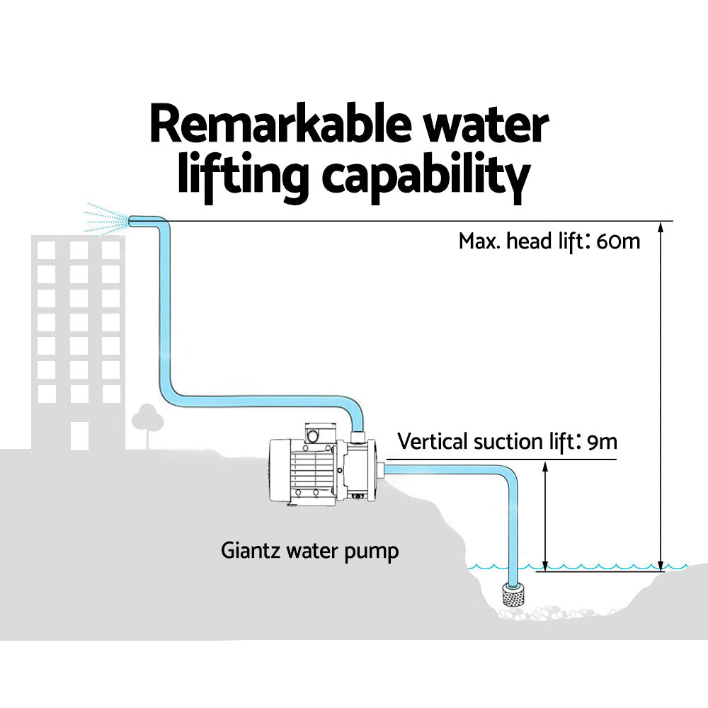Marlook Garden Water Pump High Pressure 2000W Multi Stage Tank Rain Irrigation Black
