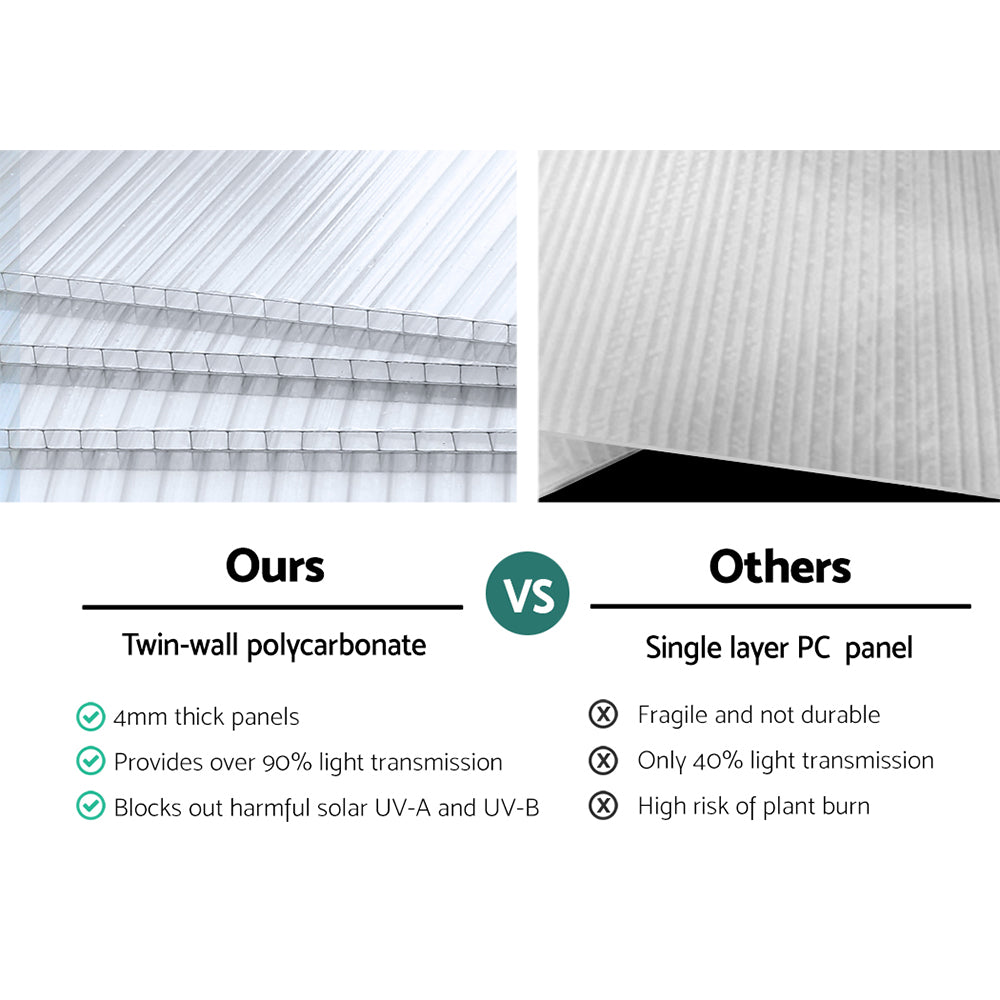 Marlook Greenhouse 3x2.5x1.95M Aluminium Polycarbonate Green House Garden Shed