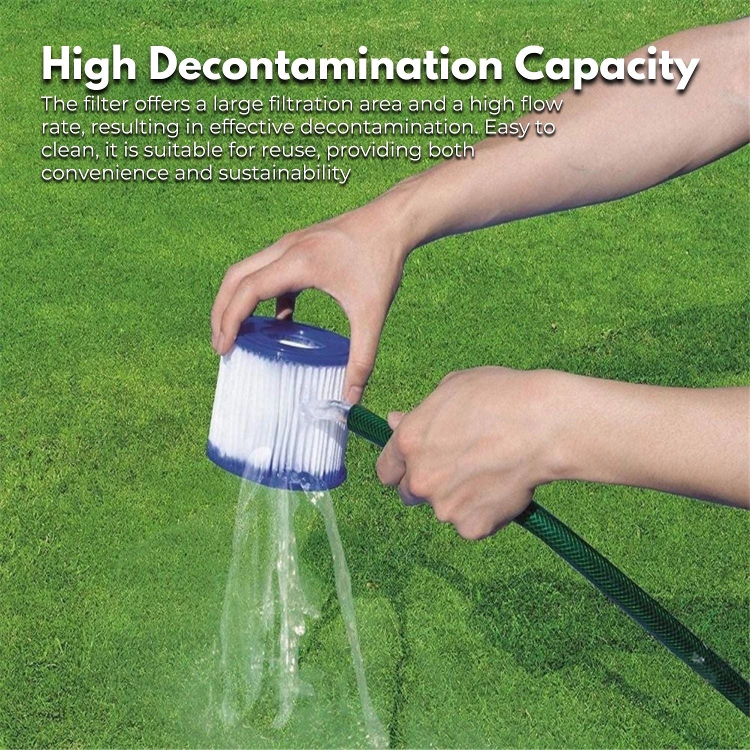 - High Decontamination Capacity: The filter offers a large filtration area and a high flow rate, resulting in effective decontamination. Easy to clean, it is suitable for reuse, providing both convenience and sustainability.