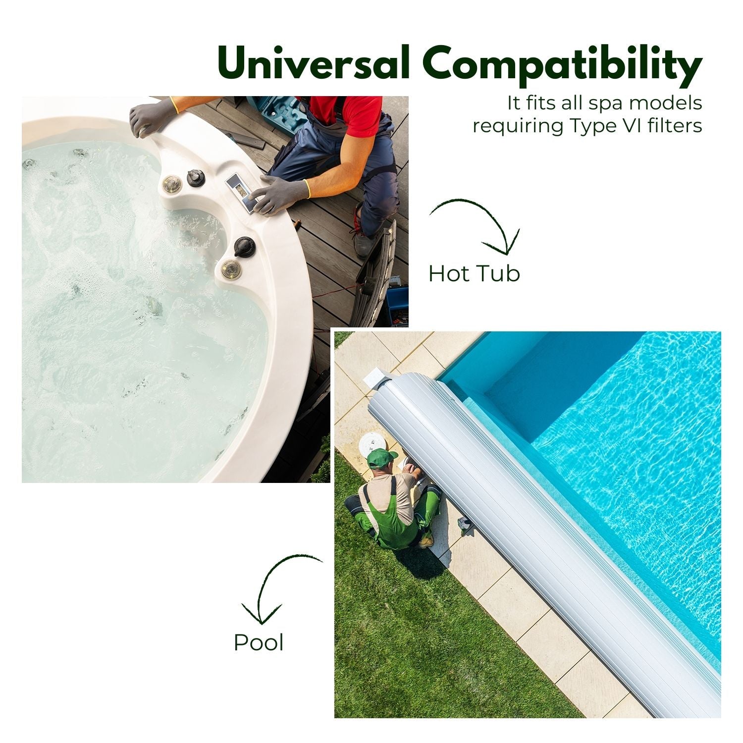 - Universal Compatibility: Compatible with various spa models, including Bestway Lay-Z-Spa, SUNSET FILTERS VI, Volca Spares Size VI, POOLPURE PLF-INTV1 Spa Filter, and Coleman SaluSpa 90352E, 58323E, 58324 Filter Pump. It fits all spa models requiring Type VI filters.
