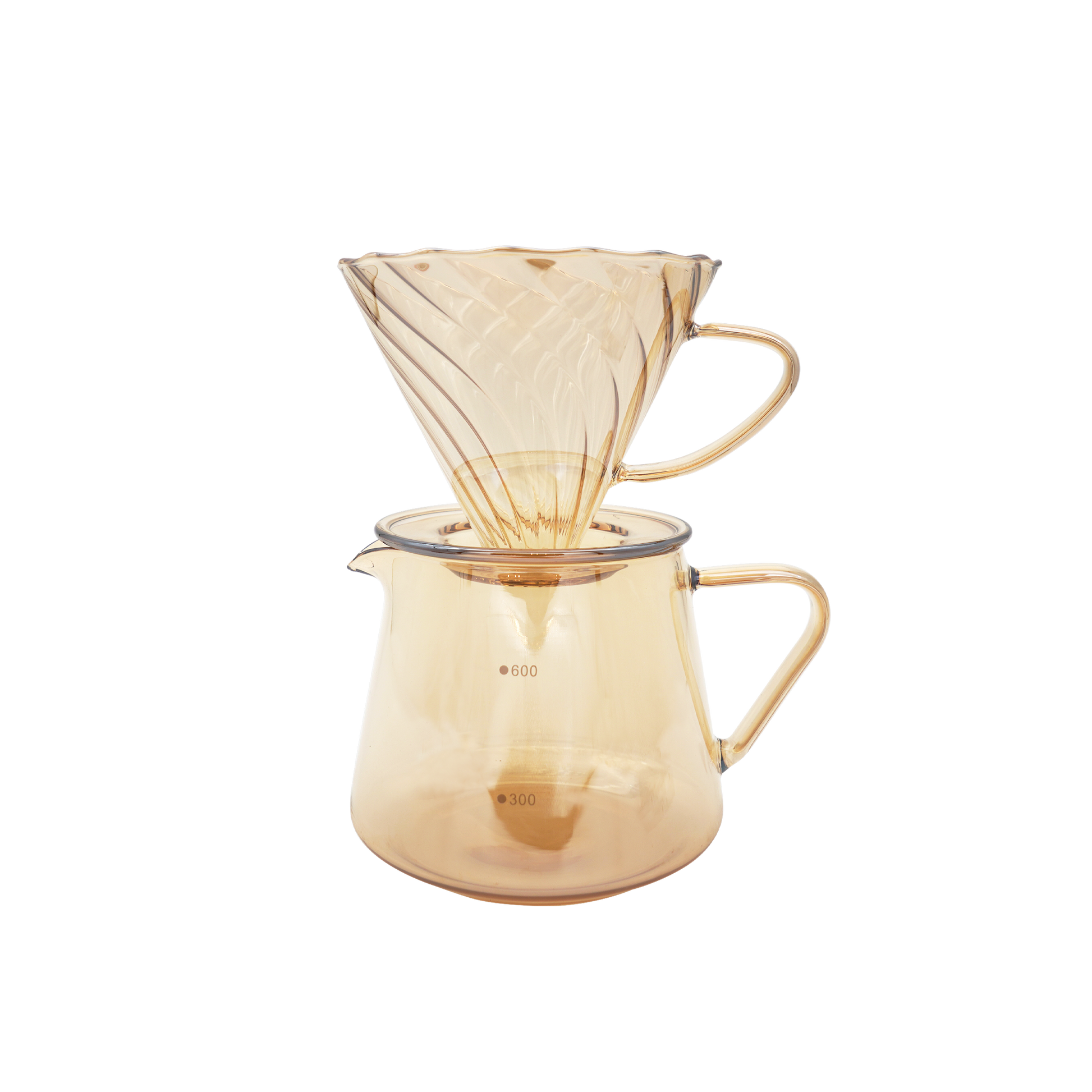 Serving espresso has never been more stylish thanks to the contemporary flair imbuing this set of transparent glass in a vibrant shade of gold, which includes a coffee Server and a clear glass cup(600ml). Elegant grooves adorn the exterior, a gold colour finish visually enhancing the set's graceful lines.