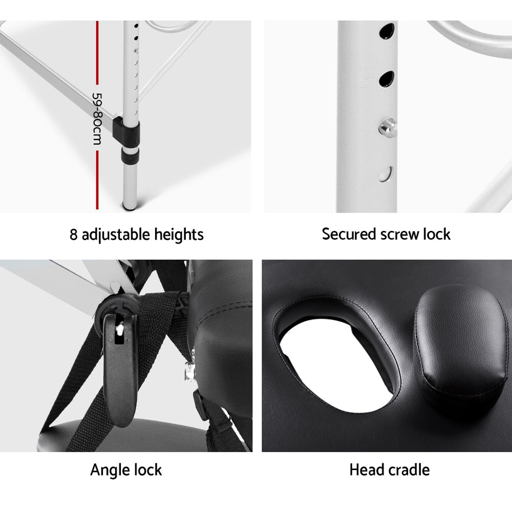 Marlook Massage Table 55cm Portable 2 Fold Aluminium Beauty Bed Black